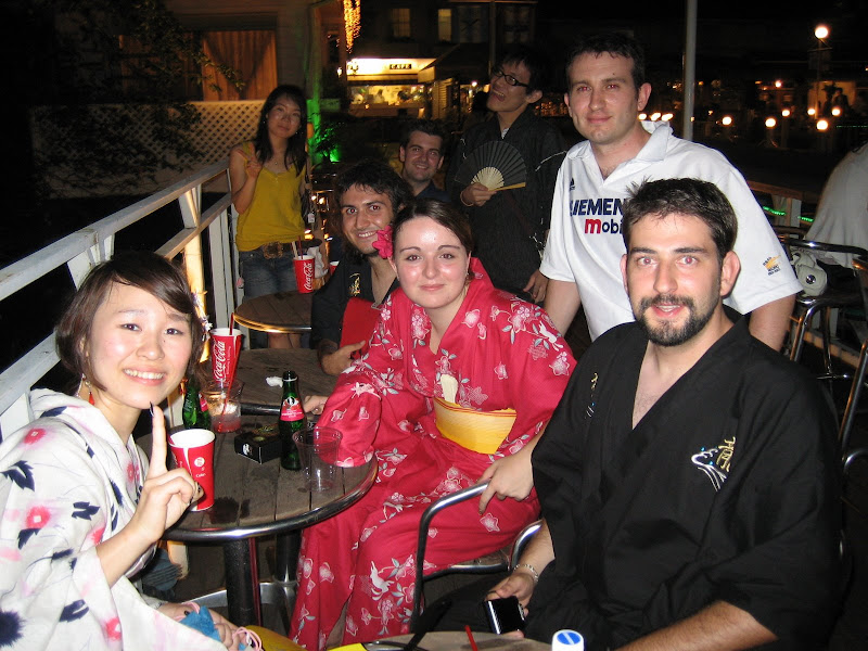 O una sensación parecida pudimos experimentar cuando volvíamos, después de hacer una larga cola, de ver los fuegos artificiales. Nos diríamos a Iidabashi(飯田橋)para ver un pequeño festival que se celebraba, pero al final nos dio tiempo a verlo así que nos tomamos unos helados en chiringito a orillas del río que fluía cerca. Pero lo que más me gustó fue que dio la casualidad de que nos montamos en el primer vagón del tren y teníamos unas vistas muy muy chulas.